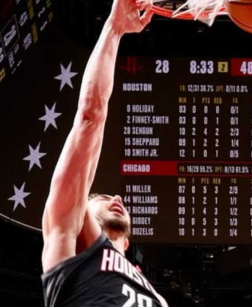 Kevin Durant’ın 40 sayı, 7 ribaund ve 5 asistlik performansına ve Alpi’nin 33 sayı, 13 ribaund ve 10 asistine rağmen, Rockets geri dönüş çabasında Chicago Bulls’a karşı yetersiz kaldı. Amen Thompson 23 sayı ve 2 top çalma ile maçı tamamlarken, Reed Sheppard 13 sayı, 5 ribaund ve 6 asistlik katkı sağladı. Jabari Smith Jr. ise yalnızca 6 sayıda kalmasına rağmen 5 ribaund aldı.